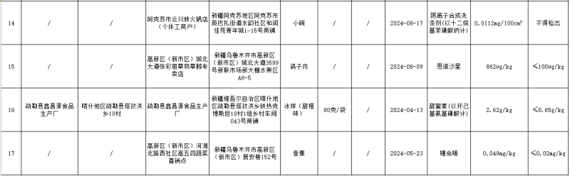 行业资讯|新疆17批次食品抽检不合格!涉及食醋、麻辣火锅底料、鸽子肉等