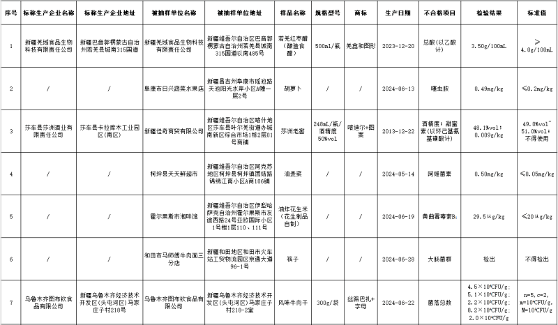 自治区市场监督管理局已要求属地市场监管部门对不合格产品和生产经营者进行依法调查处理,采取下架、召回不合格产品等措施控制风险,分析原因进行整改,将相关情况记入食品生产经营者食品安全信用档案。查处情况由企业所在地负责案件查办的市场监督管理局按规定公开。(来源:石榴云)